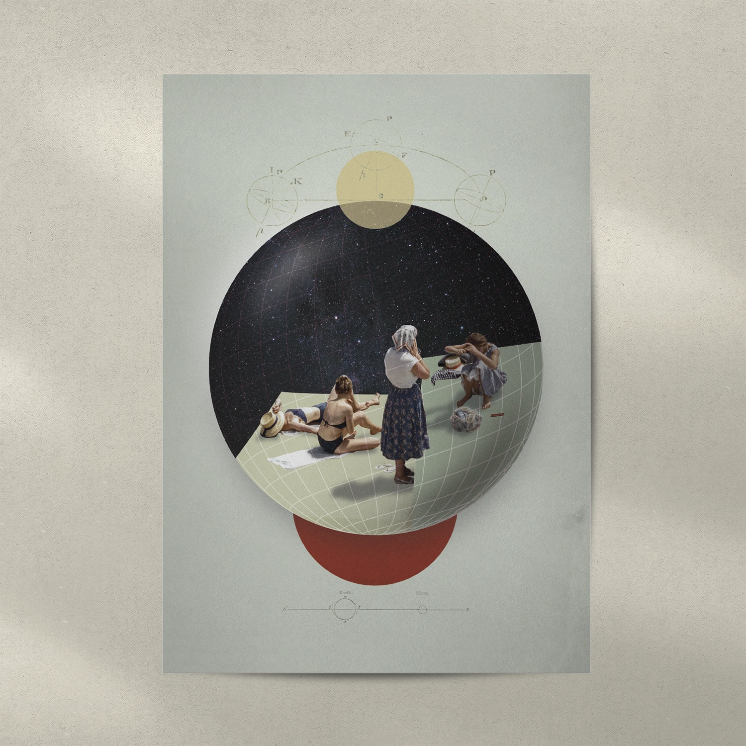 Collage digital de una tarde de verano a la orilla de las estrellas.